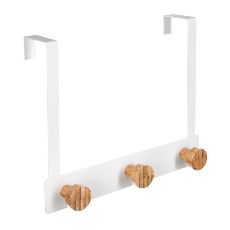 Cabide de porta de metal/bambu 3 Pom.Bco.