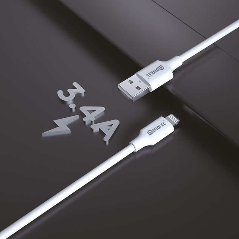 Cabo USB para Lightning. Branco. Alta elasticidade.