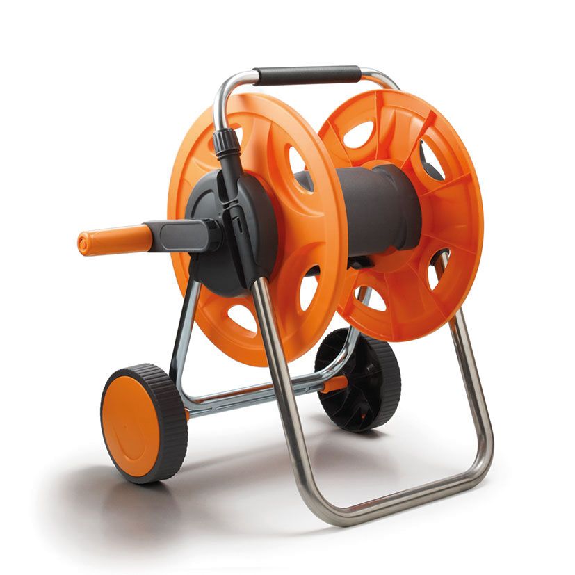 Capacidade de 60 m. Para mangueira com diâmetro interno de 12,5 mm. Estrutura em alumínio com acessórios em plástico.