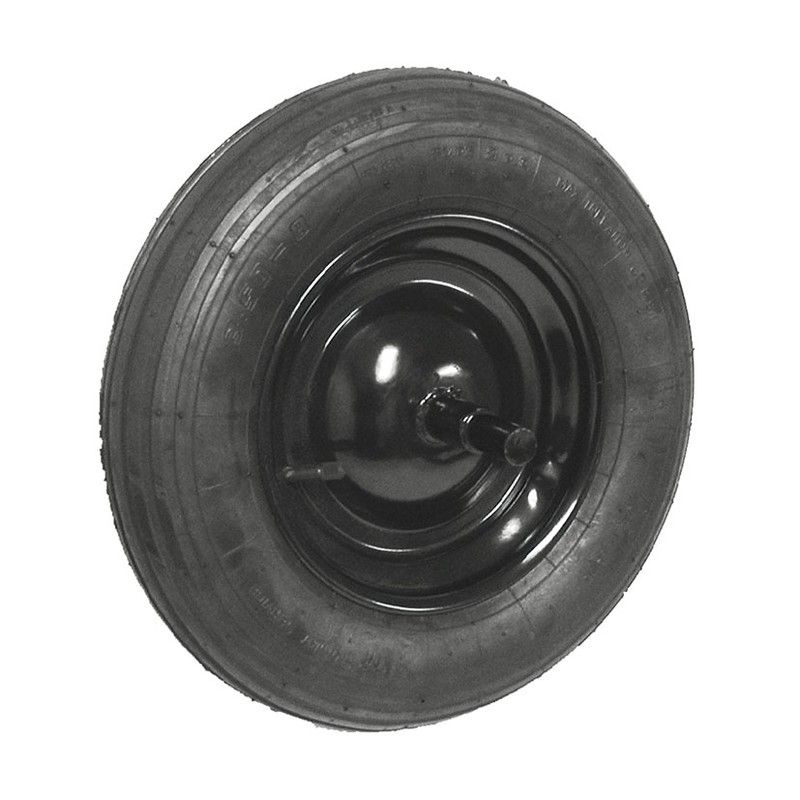 Conjunto de câmara e capa de lona 2PR. Aro em aço estampado com acabamento pintado. Eixo de aço soldado sólido 20x225 mm. Pressão adequada 2 kg/cm².