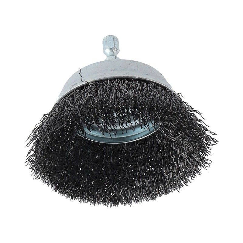 Escova Copo Arame Ondulado 75mm.Eixo 6