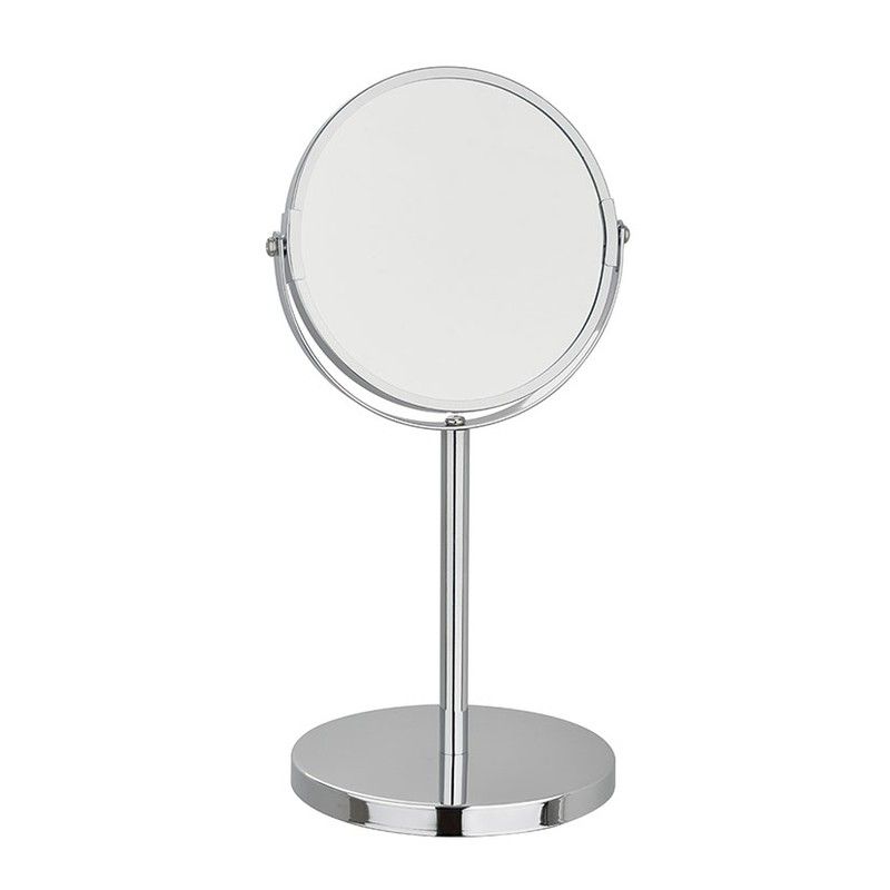Espelho duplo giratório: normal e 5 ampliações. Aço inoxidável/metal cromado. Espelho ø 15 cm.