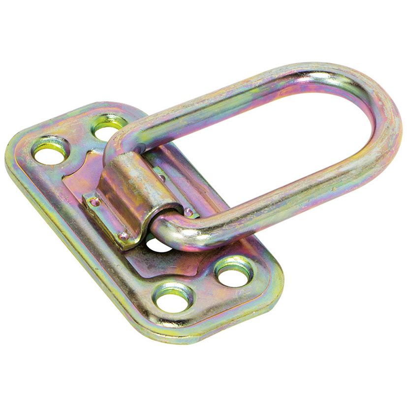 Argola articulada de 6 mm. Aço iridescente. Furos de 6 mm de diâmetro. Para uso em construções de madeira.