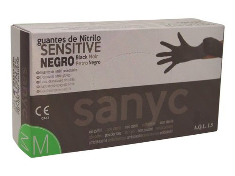 Luva de nitrilo preta sensível (M) (100)