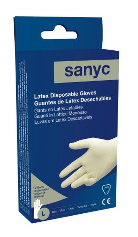 Luvas de látex com pó, tamanho 8 grande (pacote com 10)
