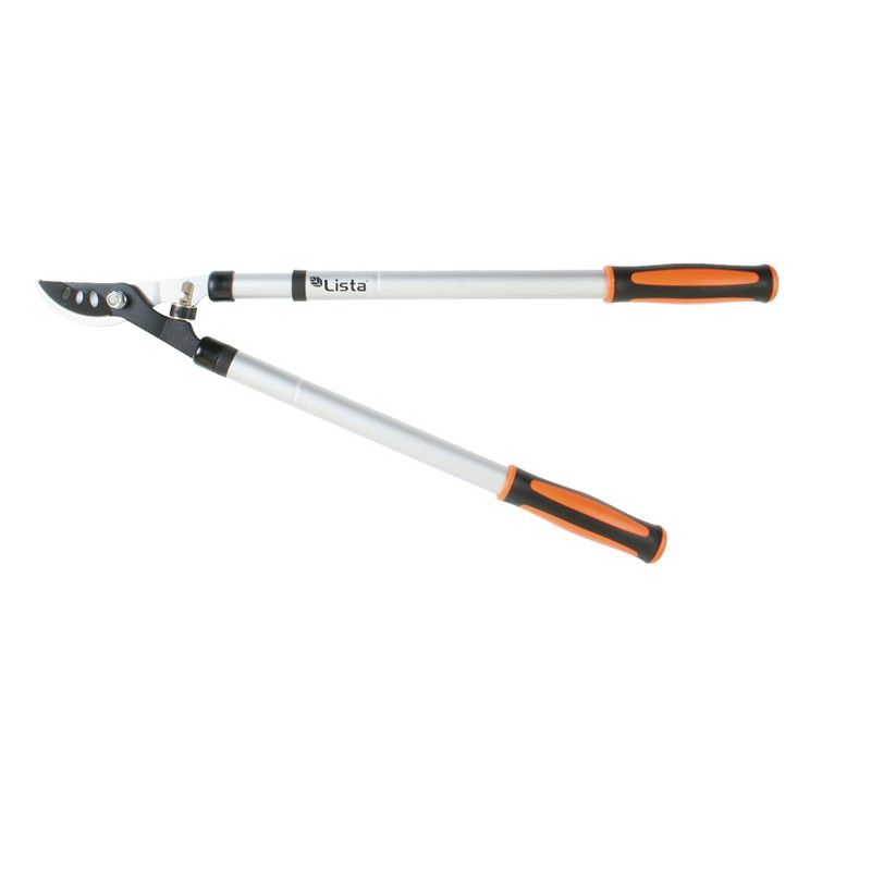 Braços tubulares telescópicos em alumínio. Corte deslizante (Bypass). Lâmina com revestimento antiaderente. Alças ergonômicas antiderrapantes.