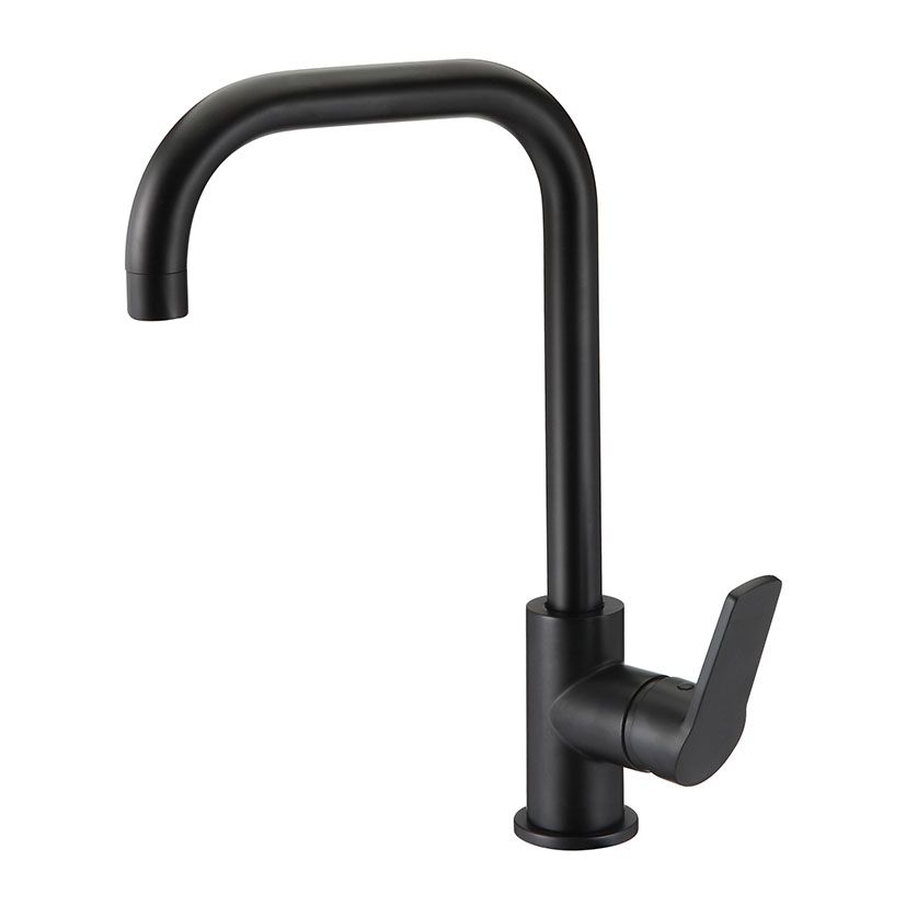 Preto fosco. Bica de ângulo duplo. Cartucho cerâmico ø 35 mm. Mangueira flexível de 400 mm.