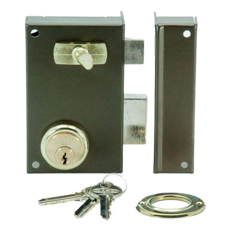 Cilindro e alavanca acionados com chave em ambos os lados e alça na parte interna. Ferro esmaltado de alta resistência. Inclui 3 chaves.
