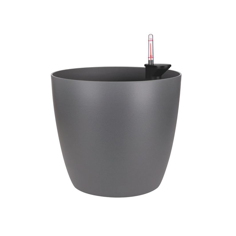 Com reservatório de água inteligente que mantém as plantas de interior saudáveis. Plástico reciclado. Resistente ao calor. ø 25 x h 23 cm. Cor antracite.